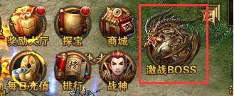 在游戏当中,每个玩家都拥有单挑强大BOSS的机会,点击激战BOSS图标,可以进入个人BOSS界面进行挑战。