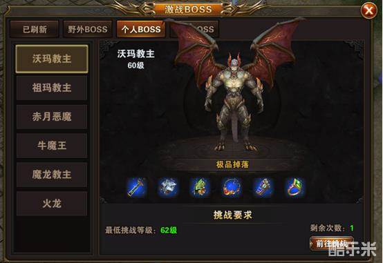个人BOSS根据等级依次开放,等级越高,可以挑战的BOSS越强大。每个BOSS每天都可以挑战一次,进去后无论是否成功击杀BOSS次数都会消耗,进入之前一定要做好准备。高等级的个人BOSS地图需要消耗副本卷轴才可进入,副本卷轴可在未知暗殿掉落或花费绑元购买。