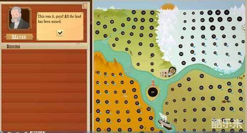 地图上的数字代表能采石油的多少。(中间的那个大岛爽翻了,全是油基本没有土)。油脉的分布都是有规律的富矿的周围依次递减为贫矿。重点说一下,从图上看,前两关的油矿分布还是挺均匀的,第四关的油矿最多的80+最少的10+(区别就是80+随便卖油都能赚6w+,10+的地块把油吸干,把天然气捂热,油价抬到3刀以上勉强才能赚3w),所以储油技术我都给点满了(先拍地再进酒馆,油多地块可以选择跟公司PY交易让他保持油价,油少地块多屯油多屯气最后2个月1波爆炸完成反杀)。