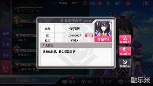 第二种方法:点击屏幕左下角的聊天频道,随便戳开一个ID顺眼的人——
