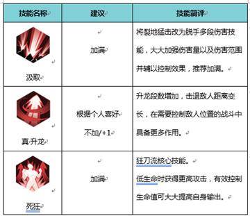 这类强迫敌人位移的技能在团战中可以对己方脆皮进行有效保护,也可以将对方脆皮推至我方火力区,简直是行走江湖必备,是十分有大哥风范的技能。除了这类强迫位移的技能,狂刀还拥有两个脱手输出技能——剑气爆破和升级版的裂地猛击。不仅伤害高而且范围大,而且不用近身攻击。建议大家一定要加满它们。