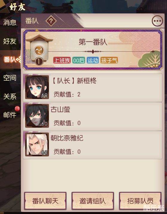 除了添加不同好友外,玩家还可以与其他人一起组成番队。番队是由六个人组成的小团体,通过番队的不同标签,玩家可以找寻到适合自己的番队。在番队中也有不少的奖励,比如每天玩家和同一番队的成员一起完成番队的任务,可以获得对应的大量经验,同时还能帮助自己所在番队提升等级。随着番队的等级不断提升,同番队队员完成任务后所得奖励也会越来越丰富。玩家加入番队之后,还可以通过参与决胜千两金的活动来得到获取更多奖励的机会。