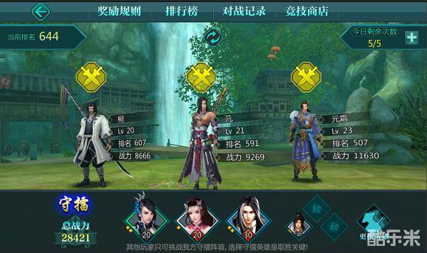 在九霄竞技中可以设置守擂阵型,选择合适的守擂英雄很重要,会有更高机会获得更多奖励。竞技场每天可以免费挑战5次,花费20金锭可以购买5次挑战机会,可以购买6次。VIP越高可以购买更多次数。