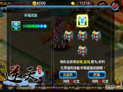 玩家每日都有一次免费祈福的机会,一次免费祈福有什么可稀罕的?我会告诉你每一次祈福都要花20元宝么?五连祈才给打个九五折啊!祈福能得有什么好玩意?我会告诉你坐骑,金钱、修为,材料,元灵值和技能书这都产么?珍贵坐骑很难得哦,错过这一次机会,亲你就等着自掏腰包吧!