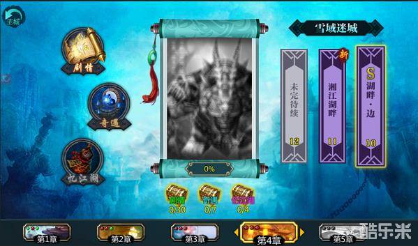 进入剧情页面后,点击剧情,即可展开剧情关卡。点击奇遇即可查看本章节已开启的奇遇关卡。点击忆江湖即可查看本章剧情开启的忆江湖任务。