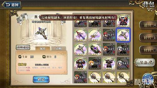 技能加成治疗效果,同时和魔物法师战斗时有智力和双防的提升,满级有15%的治疗加成和20%对法师魔物的智力双防提升。这个装备的特性决定了带它的角色必须有治疗能力,同时还要输出。能达成这些条件的角色不多,所以也是比较限定的装备。