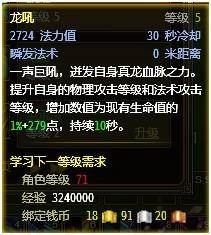 首先,天龙门挂机主要技能就是水龙吟,吸血高,耗蓝低,是一个very very good的技能。