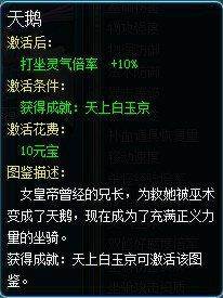 成就激活:当玩家达成某个成就,打开成就界面并且跳到相应成就标签,完成后即可将坐骑图鉴激活。