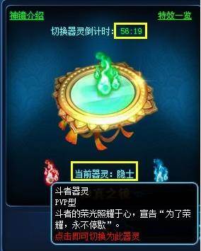 点击界面的”器灵之火”可切换器灵,获得不同的偏向属性加成。每次切换冷却时间为1小时。