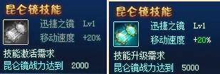 昆仑镜技能等级由玩家的昆仑镜战力决定,昆仑镜战力越高,则技能等级越高,技能效果越强。 若玩家昆仑镜战力未满足技能 1级需求,则技能处于未激活状态;昆仑镜战力提升时,技能将自动激活或升级。