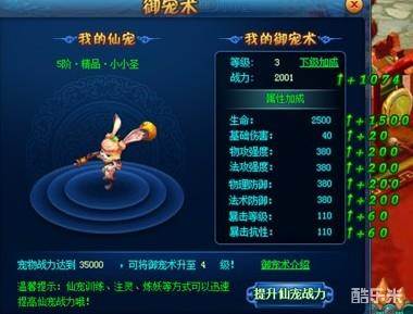 2、仙宠战力达到指定数量时,御宠术等级将自动提升;