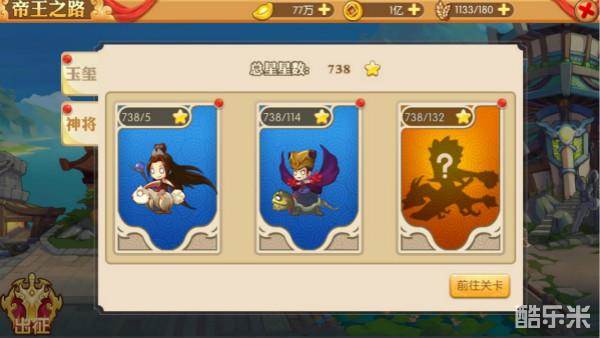l在帝王之路的行进过程中,达到一定星星数量后,还能够获得相应的武将碎片及武将整卡。