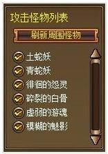 1、角色进入怪区后,点击刷新周围怪物按钮,系统将角色所在场景的怪物名称选取刷新至列表中。