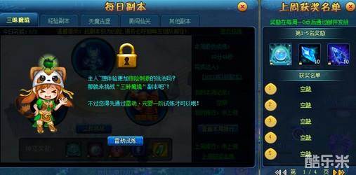 等级≥80级的玩家,打开“每日副本”界面就可以看到“三昧魔境”标签页了。不过由于三昧魔境过于凶险,小仙儿需要您先通过“雷劫·元婴一阶”试炼,来证明自己有挑战三昧魔境副本的能力。