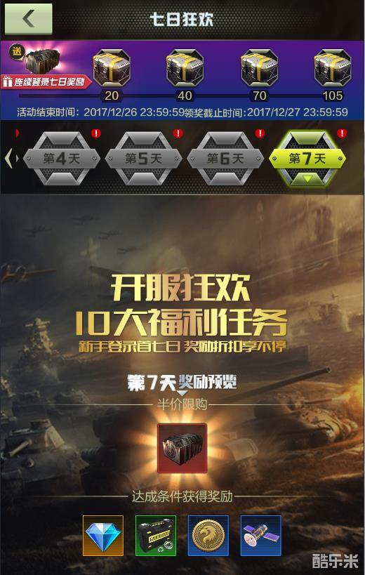 七日狂欢不仅连续登陆第七日会赠送橙色战机,第七日的半价购买也能获得一架橙色战机,不要错过。