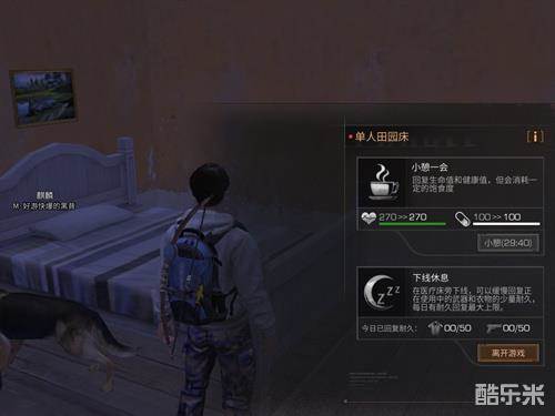 我们可以通过休息提升自己的状态,同时也会对正在使用的武器和衣服耐久度进行恢复,每天最大恢复上线值为:服饰50、枪械50。提升耐久度所需道具为床!