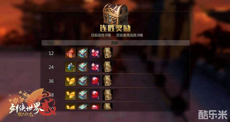 同时,如果侠士连胜场数达到相应数量时,还可获得上等洗练石、辉日晶魄碎片和专属称号奖励哦!