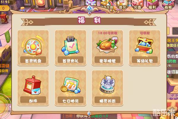 看到福利两个字就知道这里有大把免费资源了。福利这块除了提供每天的转盘奖励,登录礼包外,比较好的奖励在等级礼包、精灵祈祷这两块。等级礼包主要提供装备、宝石、经验药水等等资源,精力祈祷则提供金币和钻石奖励哦!当然,也不要忘了经常查下邮箱,谁知道各位NPC会在什么时候偷偷给你塞点东西呢!