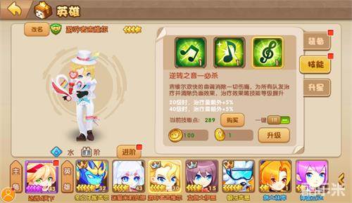 吉维尔欢快的曲调消除一切伤痛,为所有队友治疗并清除负面效果,治疗效果随技能等级提升