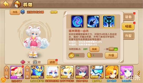 米莉安娜释放喵神之力,对敌方4名敌人发动攻击,造成1次魔法伤害,并有几率将对手变形,伤害和变形效果随技能等级提升