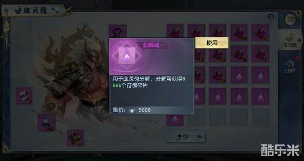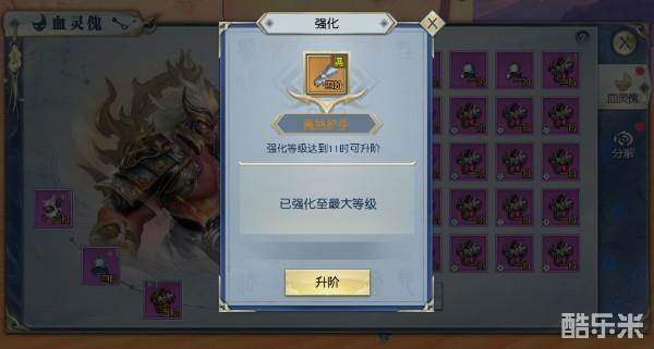 血灵傀装备的强化所需要的素材,一部分来自副本,另一部分需要分解装备来获取,然而每天分解的装备量是有限的,限次30,所以在分解的时候,尽量选择高阶的普通装备,保证最大幅度获取强化资源,从而快速提升战力。一步争先步步争先,先人一步才是生存的王道。