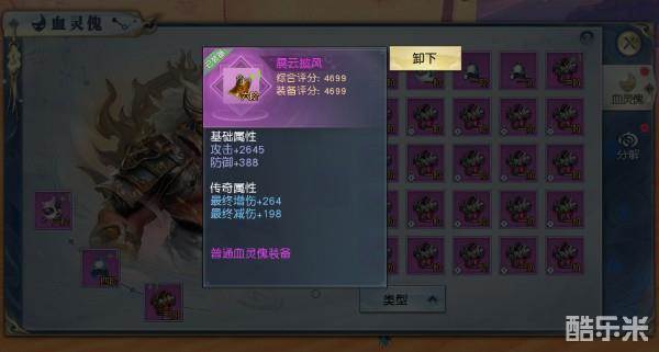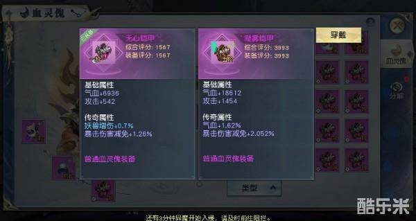 血灵傀装备,其实是一套单独的装备系统,以品质可区分为两种:可强化和不可强化。