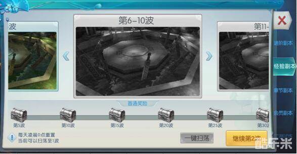 经验副本还有一键扫荡功能,玩家可以对已通过波数进行一键扫荡并获取奖励,首次通关新波数都会获得首次通关奖励,每5波还会有额外奖励。通关副本数越多,那么次日可扫荡获得的经验也就越多唷;