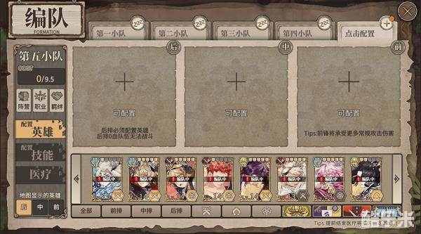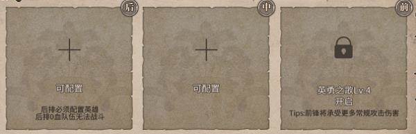 后排:必须配置英雄,角色血量为0的话则无法战斗。
