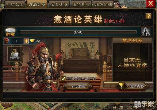 1.举办宴席:有酒的玩家在选定一种酒后,可开启宴席进入等候列表,等待其他玩家选择进入(3分钟后没人参宴,则宴席自动解散)。