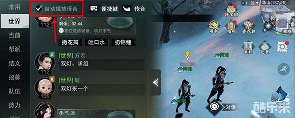 楚留香的世界语音是默认开启了,所以在游戏中非常吵。关闭世界语音需要在聊天框中选择世界界面,然后找到最上方自动播放语音的勾选把勾去了就可以了。