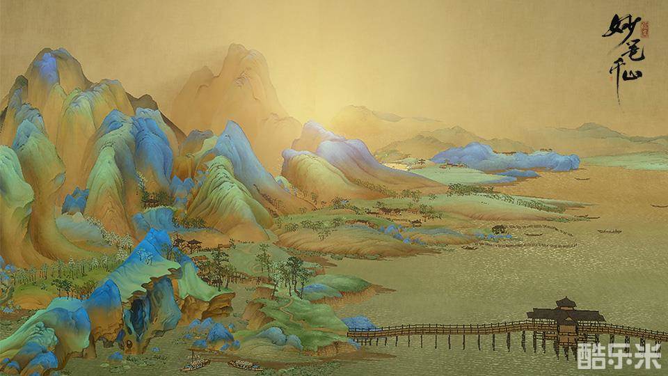 对比其他青绿山水作品,北宋横空出世的《千里江山图》,不可复制与超越,其传承近千年依然璀璨绚丽,光彩夺目,在于王希孟创作的并不止一幅画,而是多个层次精心雕琢,逐一铺染,才能达到青出于蓝而胜于蓝,颜色层次丰富且永不褪色,历久弥新的效果。青绿山水画作气势磅礴的壮阔感,以及无与伦比的艺术价值——正是《绘真·妙笔千山》想要传达给玩家的初心。