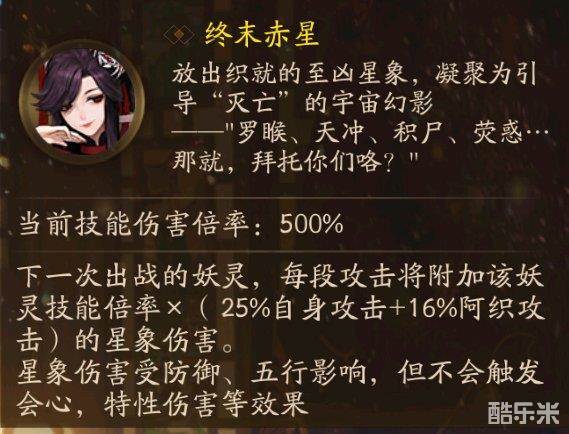 受到无支祁的buff加成影响,无支祁释放完技能后 阿织再释放技能 会获得一个70%攻击的buff(有时间限制,持续时间之内加成有效)。