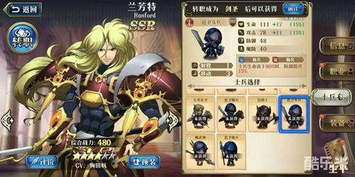 由于兰芳特的超绝要求部队混搭,因此骑士路线带的兵种就变成了皇家狮鹫,本身狮鹫的输出不俗,而且不会影响到骑士的移动力。而剑士路线选择较多,除了天琴和狮鹫外,枪兵的姬武神和近卫枪兵也可以,对于以攻击为主的兰芳特而言,姬武神明显比近卫枪兵好。