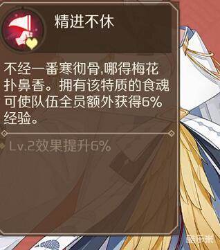 拥有该特质的食魂可使队伍全员额外获得6%经验。