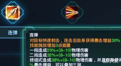 我们拿一个技能来距离,比如连弹这个技能,我们点开后,可以发现下面会有四个分支技能: