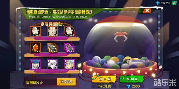 4.积攒钻石主攻娃娃机,抽强力伙伴。娃娃机目前共有5期,活动每期上线3天,间隔1天,循环上线。娃娃机中的主打猎人分别是西索、王、伊尔迷、尼特罗、帕里斯通。优先抽取顺序为:伊尔迷>西索>帕里斯通>王>尼特罗。