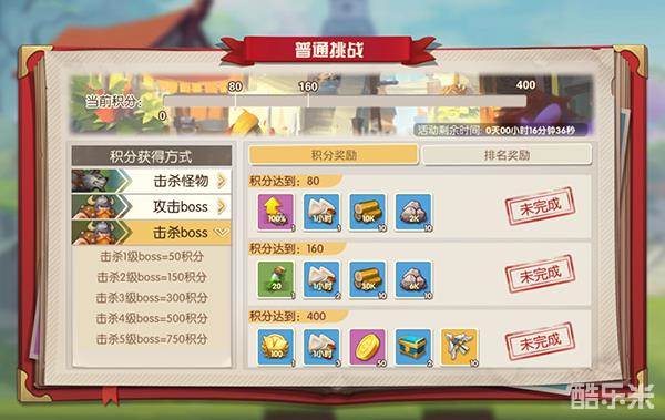 普通挑战全天候开启,完成目标积分,即可获得海量资源,升级王城打造精兵不在话下。除了积分奖励,还有全服排名奖励,注意活动的倒计时哦。