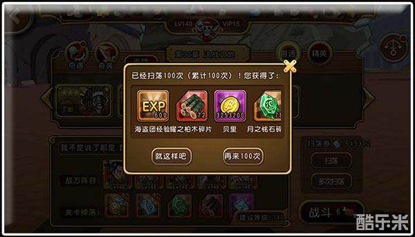 2.海底监狱:除了钥匙换贝里之外,其实每天扫荡监狱也有贝里奖励,通关的话,每天能有接近40W的贝里收入。