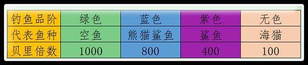 钓鱼模式不同颜色鱼儿奖励贝里的比例系数