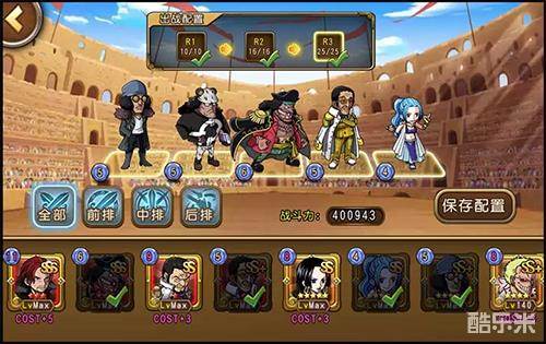 这个组合的cost总值为25,刚好用于激战第3局组建强力阵容。与前述的七武海用法相似,这也是个无锋阵,实战中大熊的先手减能会更加稳定。不同的是,这里薇薇输送能量的对象是突破黑胡子,致胜点也由突破黄猿转移到了突破黑胡子身上。