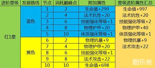 由于小编没有达到红色2星,因此红色2星以后的天赋树还未可知。简单的总结一下,就是每一个星级都有两条不同线路的天赋树,需求的天赋点也完全一致,如下图所示: