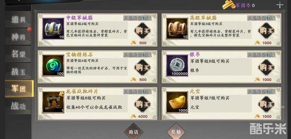 只有在加入军团之后才会开启,军团商店会刷新各种超值道具,并且当军团到达对应等级之后,军团内所有玩家都可以在军团商店奖励中使用少量军团币换取大量元宝及橙色装备。