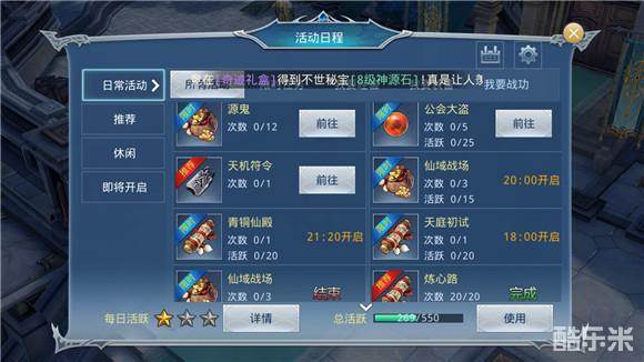 游戏里可玩的活动还是很多的,等级越高可玩的越多,而且还可以按照目的选择活动参加,要经验还是要装备一目了然。