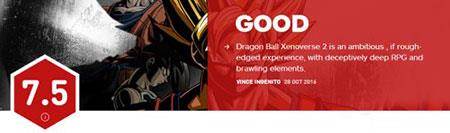 《龙珠Z》的死忠粉们终于可以找到一个好的游戏归宿,尽管《龙珠:超宇宙2》有一些奇怪的设计与粗糙的制作,但快节奏的竞技场、丰富的探索与培养元素依然撩了粉丝一把。IGN给游戏打出了7.5分的评价。