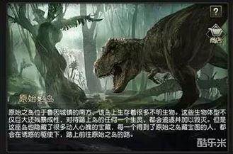 原始之岛位于鲁因城镇的南方,该岛上生存着很多不明生物。这些生物不仅体型巨大还残暴成性,对待踏上岛上的任何生灵都会追逐并加以毁灭。但是,这座岛也隐藏了很多动人心魄的宝藏。每一个得到原始之岛宝藏图的人,都会在诱惑的驱使下,踏上前往原始之岛的路。