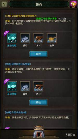 在太学院等级的研究中,会出现国器研究,这个主要是帮助武将提升战力所用,而国器图纸则可通过刷副本获得。图纸掉落的频率其实并不高,通常是比较耗费体力的,所以这便是各位主公在现阶段的重点工作安排。