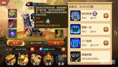 绝对防御:属性,盾。架起绝对防御巨盾,期间能够抵御大量伤害,抵挡所有贯穿类技能,并让随机目标的攻击强制依他为目标。