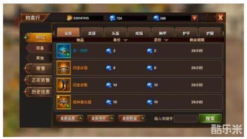 拍卖行总共分为两大块功能,分别是购买和寄售。在购买界面中,又分为装备和其他类别,各位冒险者可以在拍卖行购买到武器以及装备。不过在拍卖行生意繁荣的时候,会出现商品很多的情况,这时候就可以自行筛选品质、等阶和职业来挑选适合自己的装备,另外,还能按照价格来排序,绝对能够让你买到物超所值的好物哦!除此以外,各种素材也能够在拍卖行中找到,所以缺少素材的时候,不妨到拍卖行看一看吧!