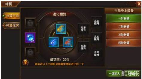 1.神翼打造系统是随机打造三个职业其中的一个神翼。