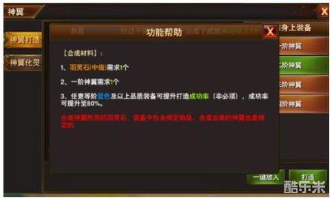 4.合成神翼所用的羽灵石、装备中包含绑定物品,合成出来的神翼也是绑定的。